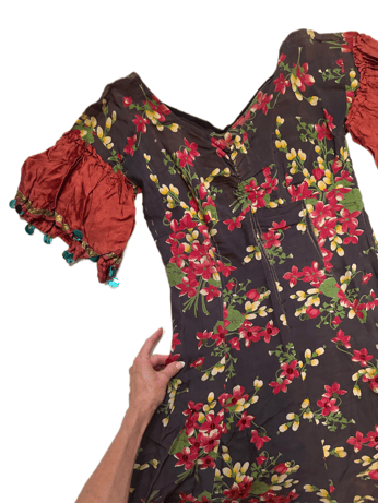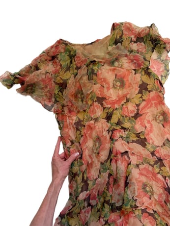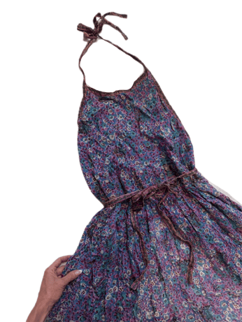 70s voile patchwork flutter sleeve maxi dress bohemian