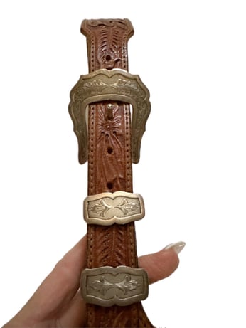 70s sterling silver leather Douglas Madnus Santa Fe belt ranger set