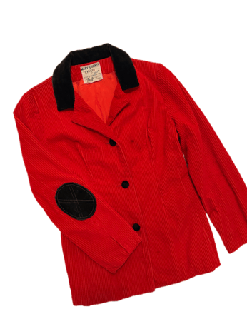 60s Mary Quant red mid blazer with elbow patches