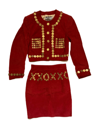 vintage Moschino coin studded suede love suit set jacket
