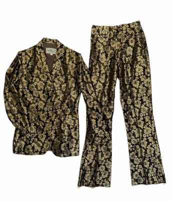 1970s gold and noir metallic western trouser suit