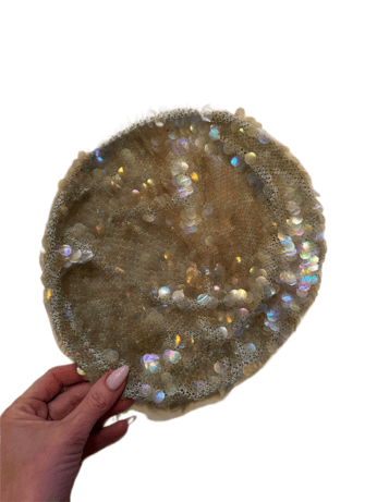 late 60s italian fine crochet slouch beret with paillettes