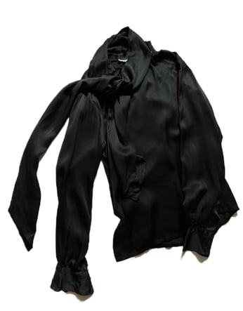 1970s Yves Saint Laurent noir silk tie neck blouse