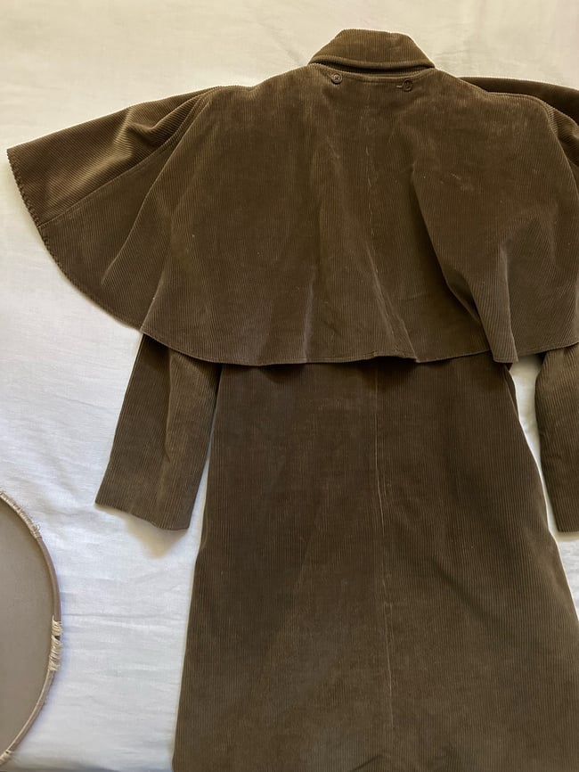 material: fine corduroy with satin lining and an amazing fine wool button in lining for warmth which can be removed