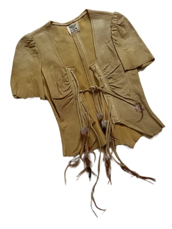 late 1960s leather and feather tie top