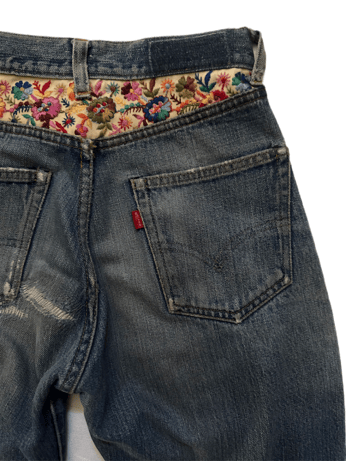 vintage 60's hand patchworked LEVIS denim bellbottoms with embroidery