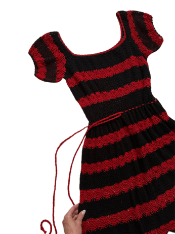 70s black and red crochet dress